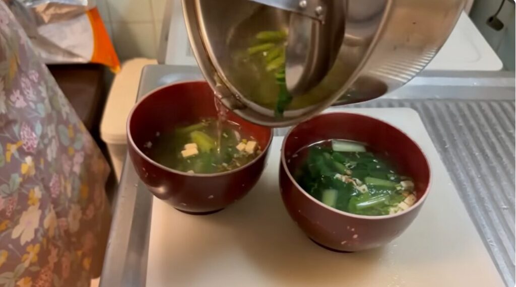 ご飯はお昼の残りを使い、味噌汁はインスタントを活用する効率の良さも、おばあちゃんらしいところです。