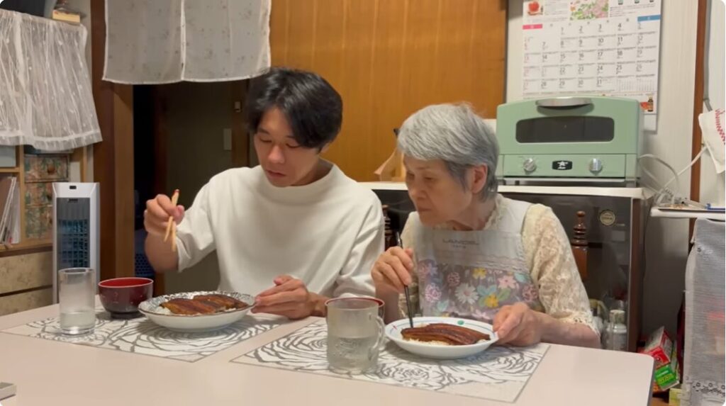 食事中、おばあちゃんが初めてちゃんとうなぎを食べたのは19歳の時だったと教えてくれました。