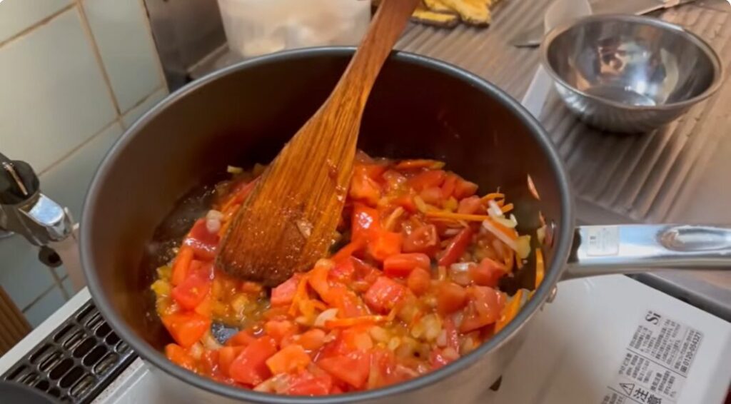 トマトを追加して、さらに酸味と旨味をアップさせます。