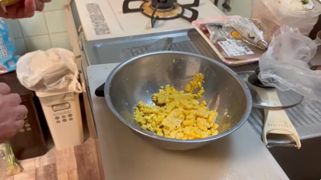 ご飯が炊き上がると、トウモロコシの芯から移った甘い香りが広がります。