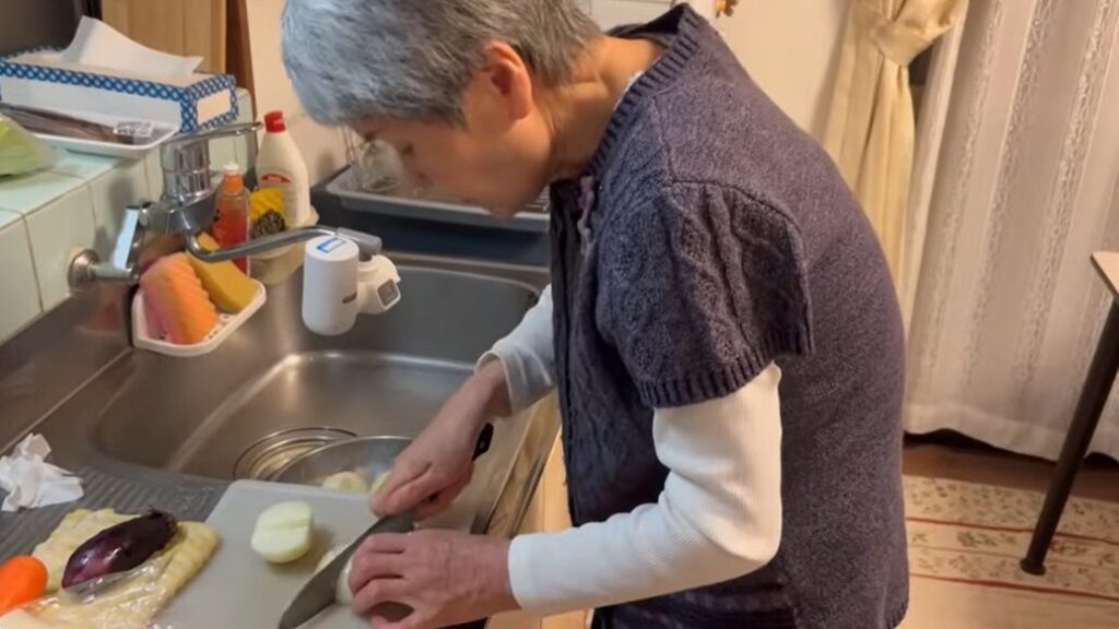 おばあちゃんは料理を始める前に、野菜の準備から取り掛かります。